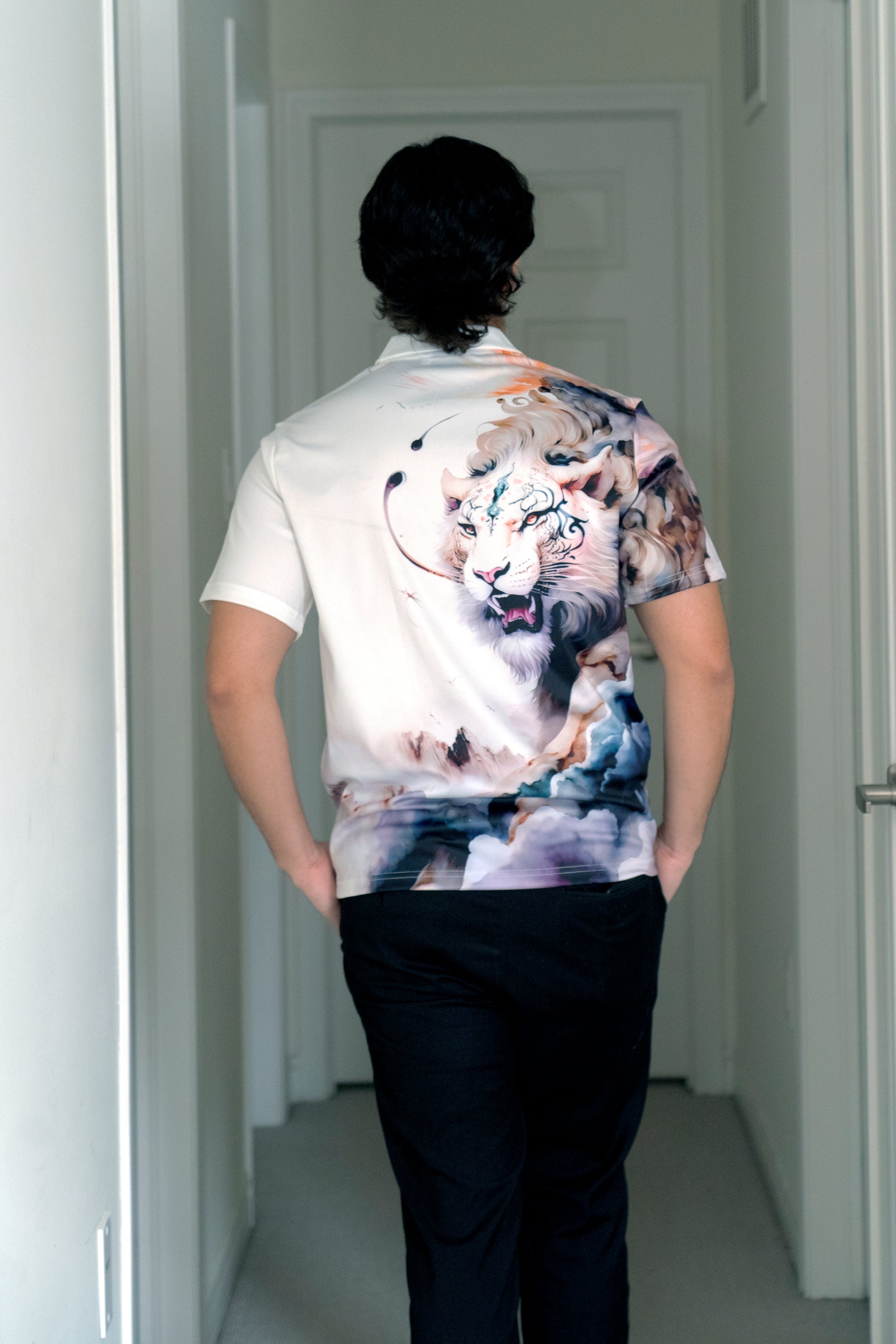 Pounce on pawsome style with our 3D White Lion Print Polo! This majestic shirt features a stunning digital lion that practically leaps off the crisp white fabric. The elegant design plays a fun game of hide-and-seek between sophisticated and wild—perfect for the gentleman who's secretly king of the urban jungle! Who knew looking this good could be such a roaring good time?